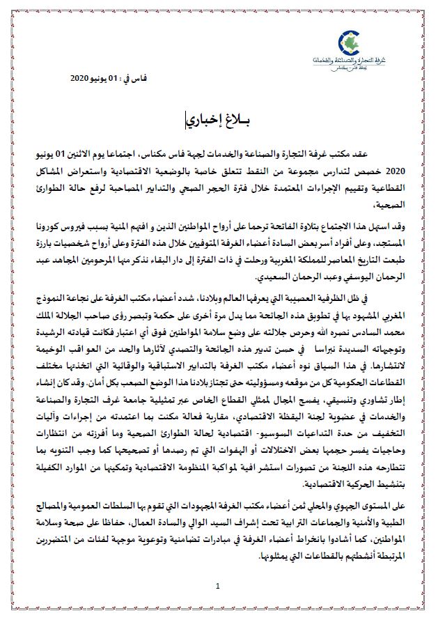 إعلان عن طلب عروض مفتوح بعروض أثمان رقم 07/2020/CCIS FM