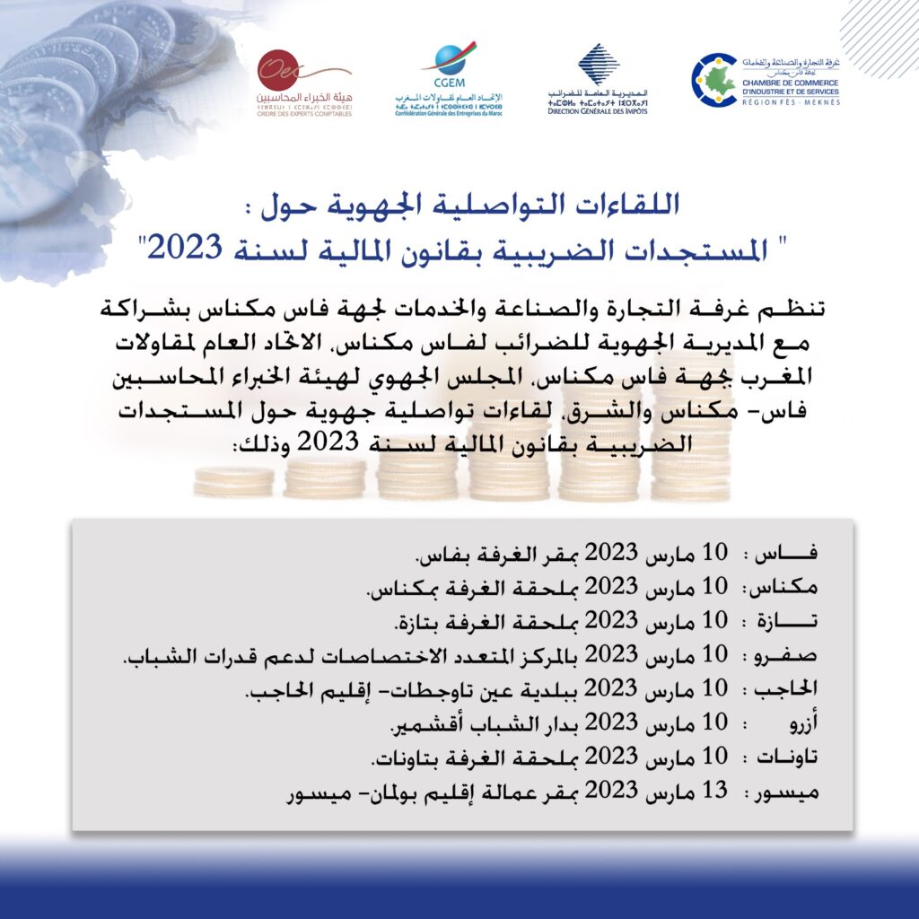 اللقاءات التواصلية الجهوية حول “المستجدات الضريبية بقانون المالية لسنة 2023”